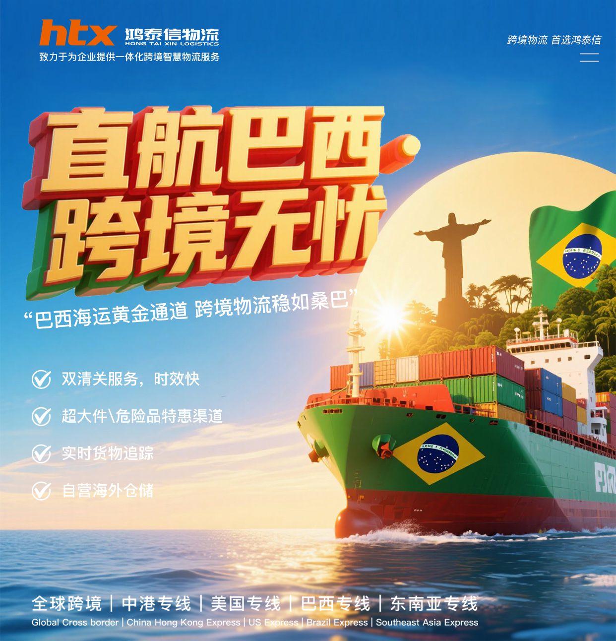 鴻泰信為了助力中國(guó)跨境商家,發(fā)展電商大市場(chǎng),特別推出了海運(yùn)海...